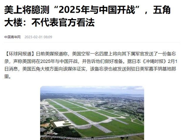美上将臆测“2025年与中国开战”,五角大楼:不代表官方看法 [中国青年报]